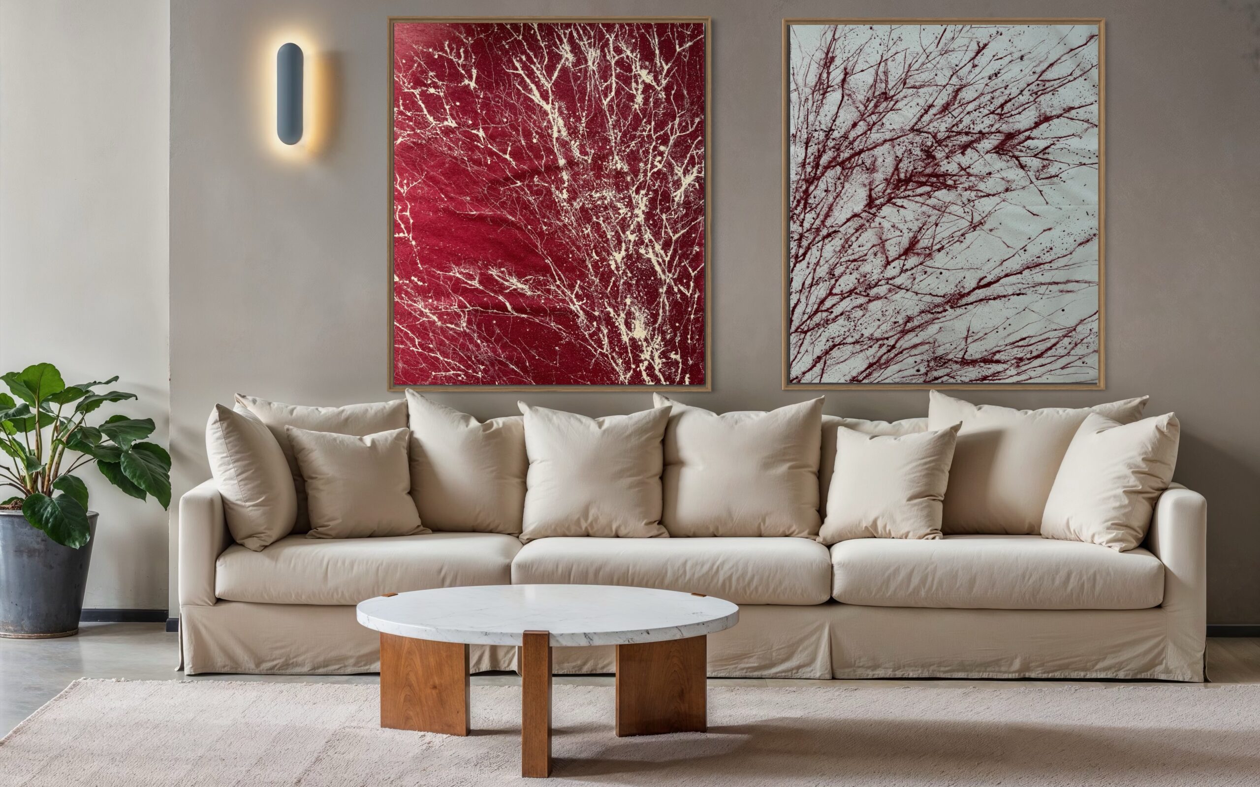 A gentle surrender to the rhythm of autumn — where branches dissolve into shades of deep crimson and quiet light. This painting captures the moment of transformation between abundance and stillness, reflecting nature’s graceful descent into rest. It invites the viewer to pause, breathe, and feel the warmth hidden within change.